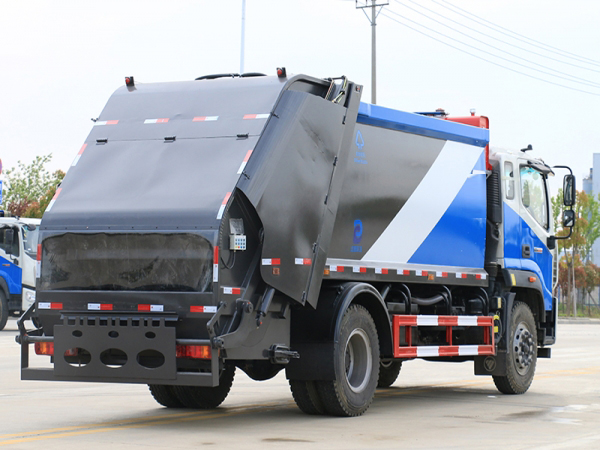 新款無筋條箱體,平面圓弧美觀大方,有效壓縮容積12立方,尾部帶翻轉上料機構,電控手動雙操控器,駕駛室與車尾部雙**箱,尾部帶3厘米厚橡膠密封壓條,帶污水收集槽,大容量污水箱。箱體可按要求噴繪圖案和字樣。